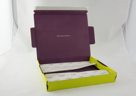 Our luxury options, complete with integral tissue branded paper, add a touch of sophistication to every package. Moreover, our commitment to sustainability is reflected in our FSC certified materials and plastic-free mailing bag options.