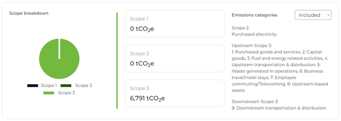 "Scope 3" contains the emissions in our supply chain and customer activity. We have included all the scope 3 categories that are significant for our organisation. Please see the “Emissions categories included” section of this page to find out which ones these are.* Our Scope 3 is offset with Carbon Credits purchased from the UN.