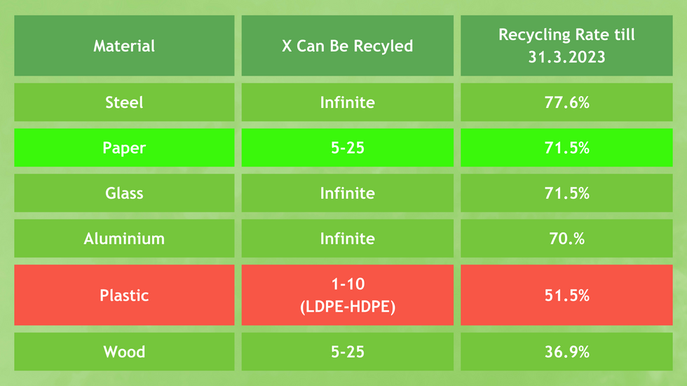 - Glass is infinitely recyclable, with less energy required for recycling than for producing new glass.