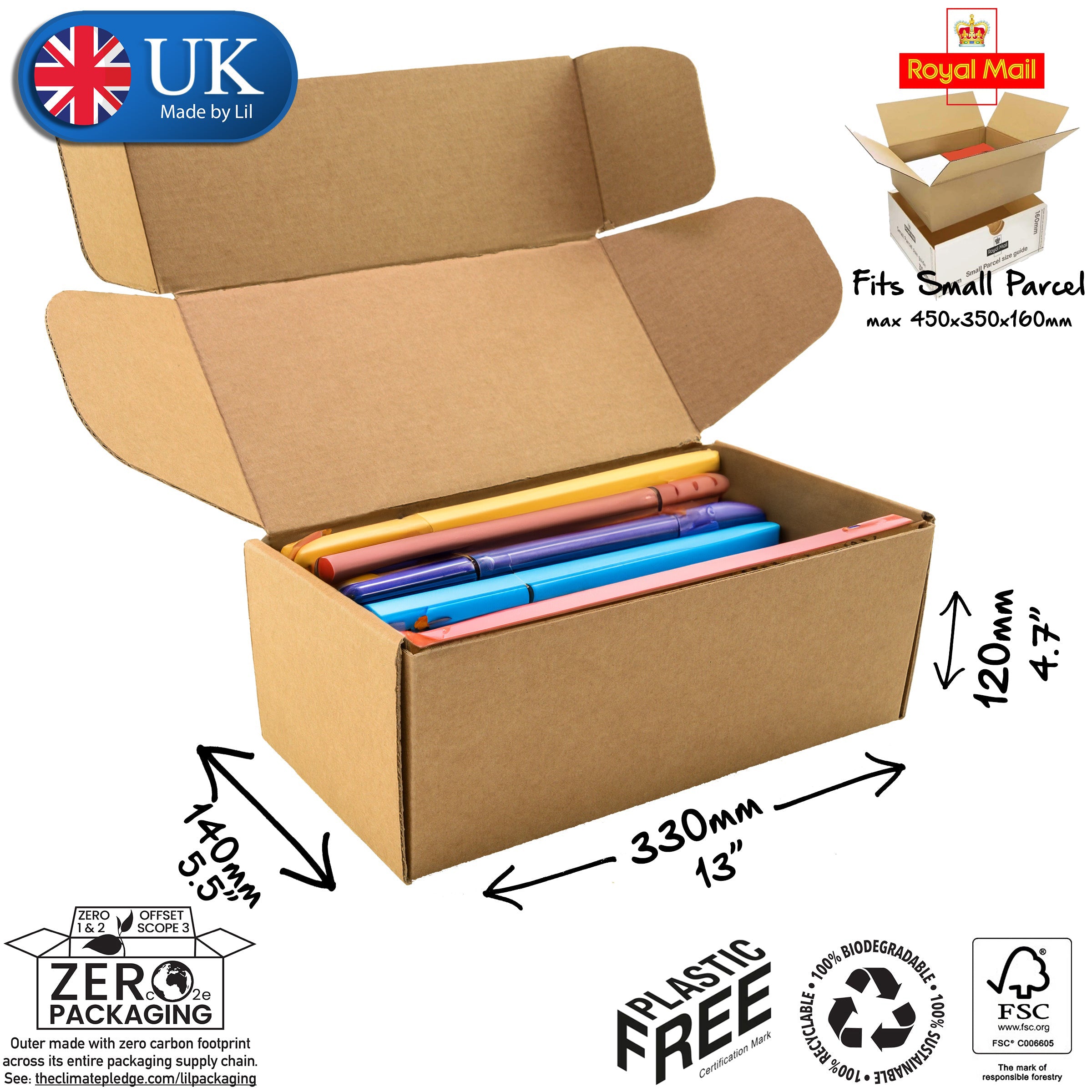 Explore the versatile 33x14x12 cm Cardboard Postal Box by Lil Packaging, meticulously designed for secure shipping and eco-conscious packaging solutions. Crafted with precision from premium recycled materials, this sturdy box ensures both durability and environmental responsibility.