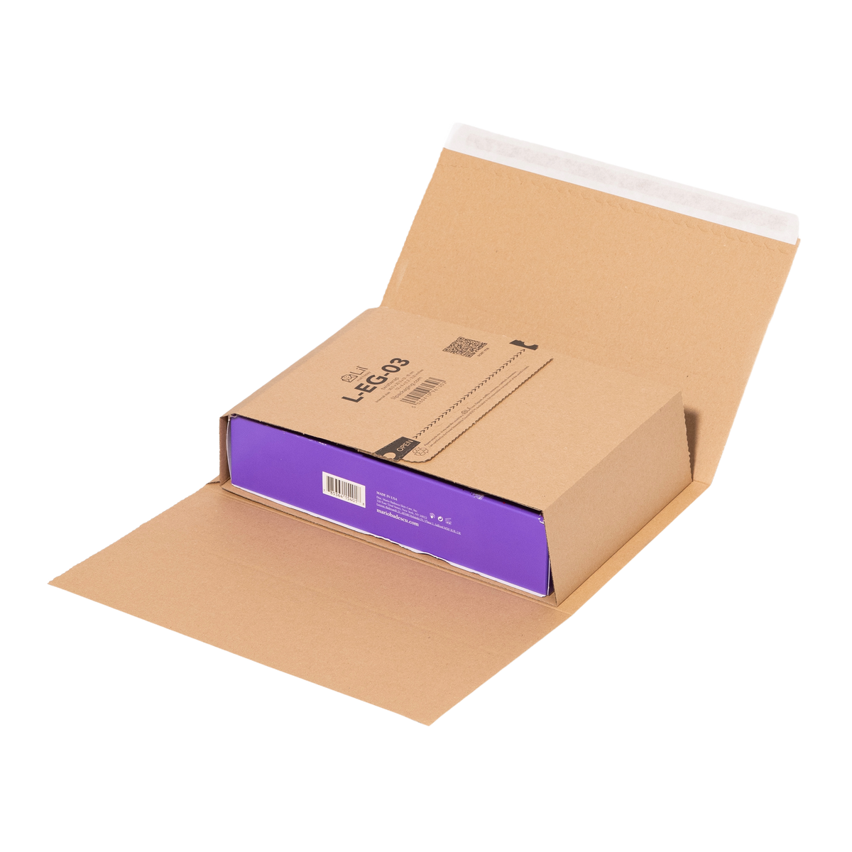 Looking for board game packaging? The L-EG-03 board game boxes are a special twist-action assembly cardboard postal mailer specially designed to work with retail boxed items destined to be posted through the mail. This particular model is perfect for mailing medium-sized boxed retail items like puzzles, board games, small electrical items, gaming accessories, jewellery, models and most other boxed toys. Built out of 125 gsm e-flute corrugated 'kraft' cardboard, this elegantly simple packaging features buffer-edge protection once assembled, variable depth control and is, on average, around five times quicker to pack than a normal '0201' box. Because it uses our leading hot melt peel'n'seal / tear-strip system for easy sealing and opening, there is no need for extra void fill or sealing tape, saving you time and money. With hot melt peel'n'seal closure on the inner panels AND the external panels, the Twistwraps are very secure from theft or loss of product in transit. The special 90 degree twist action provides extra cross-dimensional strength protecting the packages contents. Finally, the card material is FSC® certified / PEFC approved and 100% recyclable. This is a fantastic toy mailer! See our full collection of e-commerce packaging.